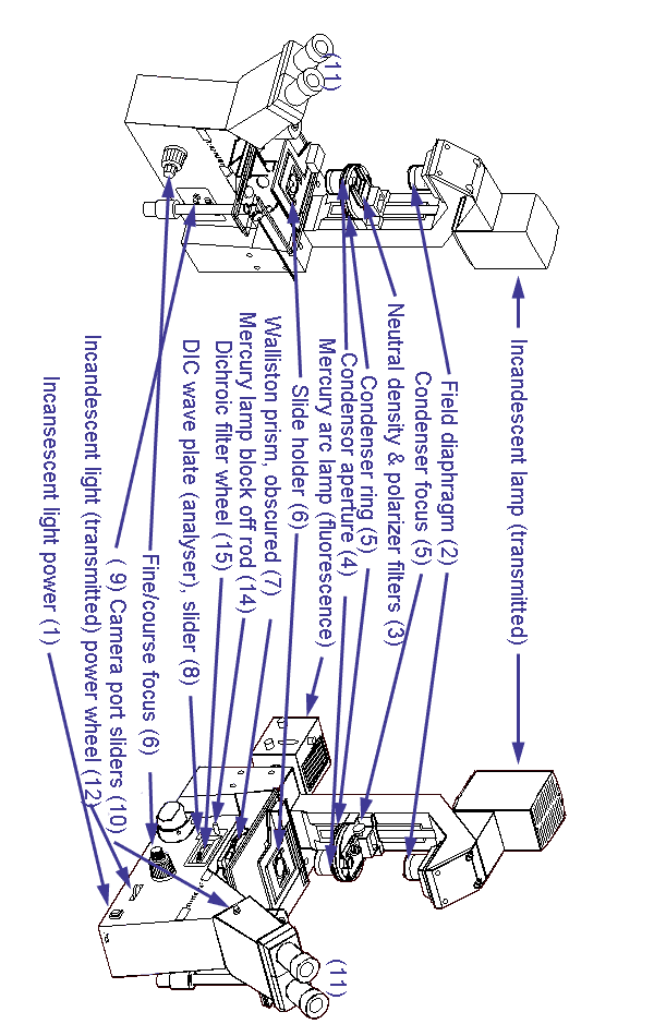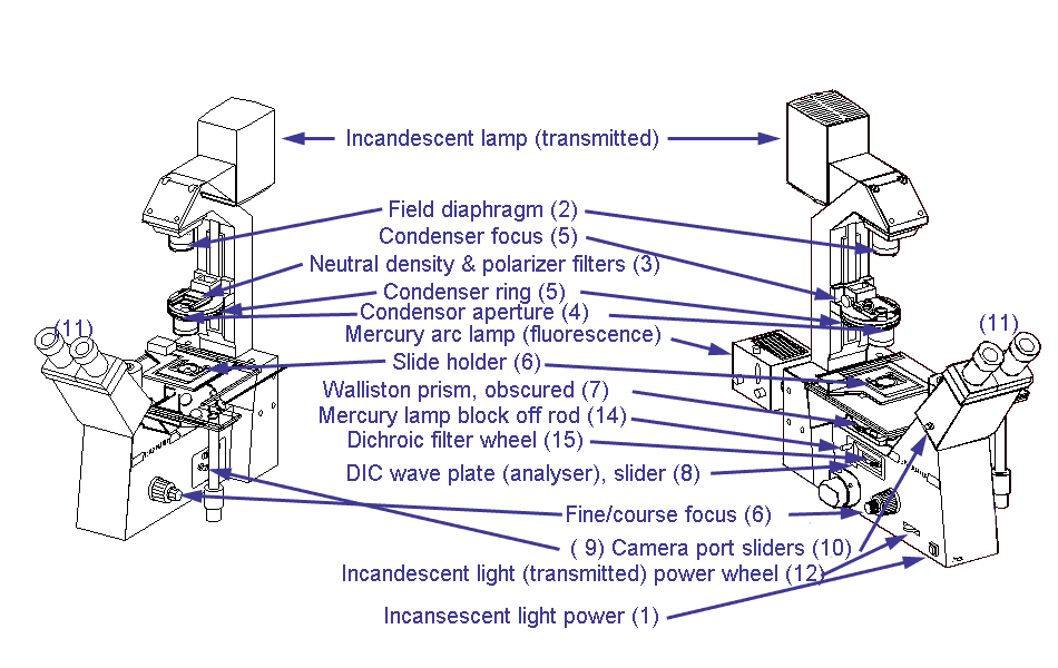 set up for transmitted light, differential interference contrast (DIC or Nomarski) and