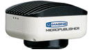 - The top trinocular port transmits 100% or 50% or 0% of light to a Q-Imaging MicroPublisher CCD color camera and has a 1x magnification.