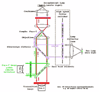 - Do not look down the eye pieces when changing dichroics on the
