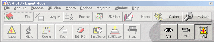 Note: if objectives are changed on the turret then the setup in the LSM 510